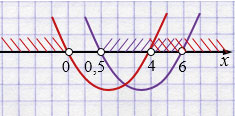 Ответ: \(x \in (4; 6)\).