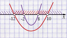 Ответ: \(x \in (-12; -2) \cup (8; 10)\).