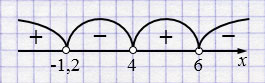 Ответ: \(x \in (-\infty; -1,2) \cup (4; 6)\).