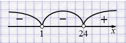 Ответ: \(x \in (-\infty;1) \cup (1;24).\)