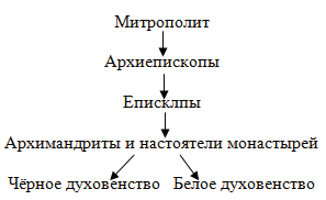 3. Составьте схему управления Русской православной церковью в XVI в.