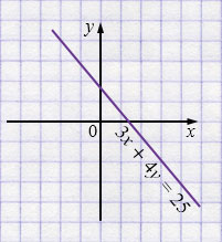 в) \(3x + 4y = 25;\)