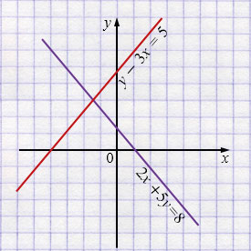 а) \(\begin{cases} 2x + 5y = 8,\\ y - 3x = 5 \end{cases}\)