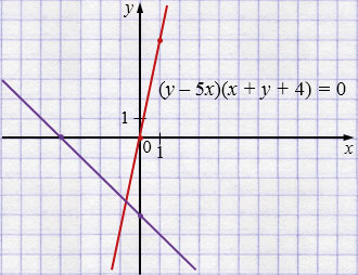 Постройте график уравнения \((y - 5x)(x + y + 4) = 0.\)