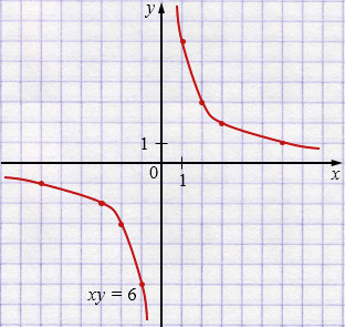 \(y=\dfrac{6}{x}\) - гипербола.