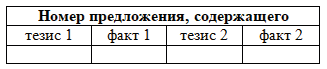 5. Прочитайте четыре предложения. Два из них являются тезисами (положениями, которые требуется аргументировать). Другие два содержат факты, которые могут послужить для аргументации этих тезисов. Подберите для каждого из тезисов соответствующий ему факт. Номера соответствующих предложений запишите в таблицу.