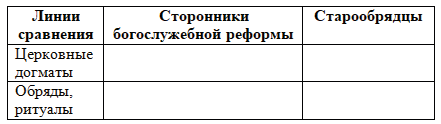 4. Сравните взгляды на православие сторонников богослужебной реформы и старообрядцев. Ответ оформите в виде таблицы.