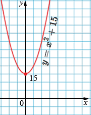 а) Графиком функции \( x^2 + 15 \) является парабола \(y = x^{2}\), смещённая вверх на 15 единицы. Вершина: \((0; 15)\). Ветви направлены вверх.