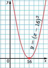 б) Графиком функции \( y = (x -16)^{2} \) является парабола \(y = x^{2}\), сдвинутая вправо на 16 единиц. Вершина: \((16; 0)\). Ветви направлены вверх.