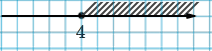 Если знак неравенства нестрогий (\(\geq\) или \(\leq\)), то точку на координатной прямой делаем закрашенной, а при записи промежутка используем квадратную скобку.