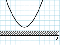 2) если трехчлен имеет корни, то отмечаем их на оси \(x\) и через отмеченные точки проводим схематически параболу, ветви которой направлены вверх при \(a > 0\) или вниз при \(a < 0\); если трехчлен не имеет корней, то схематически изображают параболу, расположенную в верхней полуплоскости при \(a > 0\) или нижней при \(a < 0\);