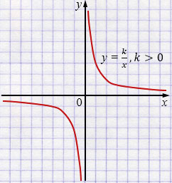 Это гипербола. При \(k>0\) ветви в I и III четвертях; при \(k<0\) — во II и IV.