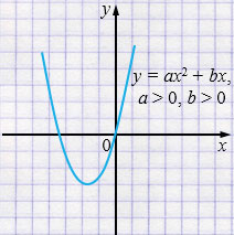 ж) \(y=ax^2+bx\) при \(a>0,\; b>0\)