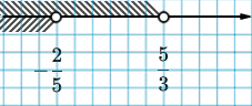 в) Первое даёт \(x<\dfrac{5}{3}\), второе после деления на \(-25\) (знак меняется) даёт \(x<-\dfrac{2}{5}\). Пересечение: \(x<-\dfrac{2}{5}\).