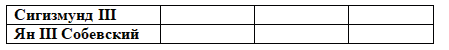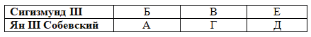 6. Определите, какие характеристики относятся к Сигизмунду III, а какие - к Яну III Собескому, проставив соответствующие буквы в таблицу.
