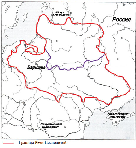 4) Названия государств, враждовавших с Речью Посполитой, - Россия, кор. Швеция, Османская империя, Крымское ханство.