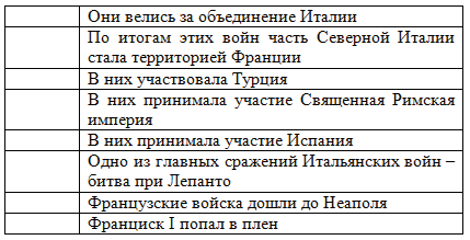 4. Отметьте, какие из приведённых ниже высказываний (всего 4) относятся к Итальянским войнам 1494-1559 гг.