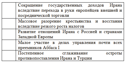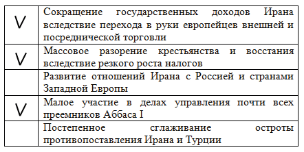7. Отметьте в левой колонке три причины постепенного ослабления державы Сефевидов после смерти Аббаса I.