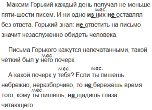 Максим Горький каждый день получал не меньше пяти-шести писем. И ни одно (из)них (не)оставлял без ответа. Горький знал: (не)ответить на письмо — значит незаслуженно обидеть человека.