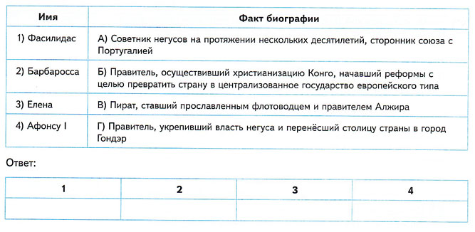 5. Установите соответствие между именами исторических деятелей Африки и фактами их биографий, проставив нужные буквы в таблицу.