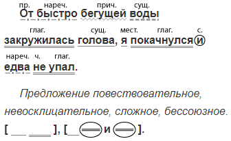 Перейти вброд глубокую и быструю горную речку не так-то просто. С первых же шагов (шаг) я почувствовал (словар. сл.), что, не будь у меня котомки (словар. сл.) за плечами (плечи) и (в)руках крепкой (крепок) палки, я не мог бы (что сделать?) справиться с течением. От быстро бегущей воды закружилась голова, я покачнулся (качка) и едва не упал. Скоро я заметил, что идти стало легче (лёгок). Ещё несколько шагов (шаг), и мы вышли на мелководье. По вздоху, вырвавшемуся у моих спутников, я понял, что мы, действительно, подвергались серьёзной опасности (Р. п., 3 скл.).