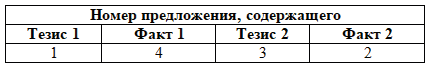 6. Прочитайте четыре предложения..Два из них являются тезисами (положениями, которые требуется аргументировать). Другие два содержат факты, которые могут послужить для аргументации этих тезисов. Подберите для каждого из тезисов соответствующий ему факт. Номера соответствующих предложений запишите в таблицу.