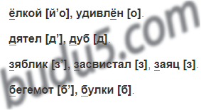 В каком слове буква д обозначает звук [д], а в каком — звук [д’]? Запиши своё решение в тетради: дятел [...], дуб [...].