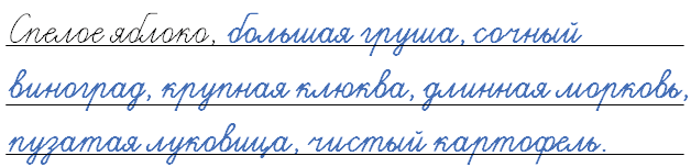 Спелое яблоко, сочная груша, зеленый виноград, желтая черешня, сладкая малина, морозная клюква, мелкий картофель, свежая морковь, горький лук, терпкий чеснок.