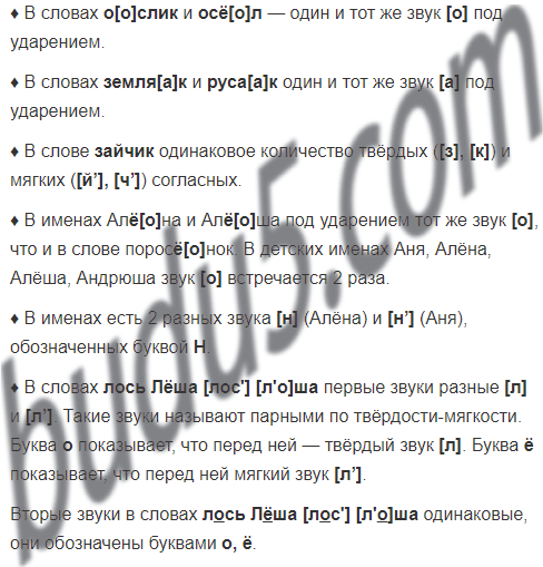♦ Правда ли, что в именах Алёна и Алёша под ударением тот же звук, что и в слове поросёнок? Какой же это звук? Произнеси и проверь. Сколько раз встречается звук [о] в детских именах? — переспросила Анишит-Иокоп. Миша сказал, что ни разу не встречается, а Маша сказала, что два раза. А ты как считаешь?