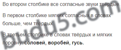 Найди столбик слов, где все согласные звуки — твёрдые. В каких словах мягких согласных больше, чем твёрдых? Скажи номер столбика.