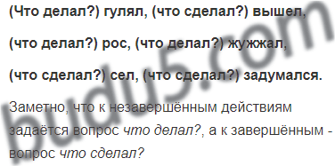 Образец: (что делал?) гулял, (что сделал?) сел.