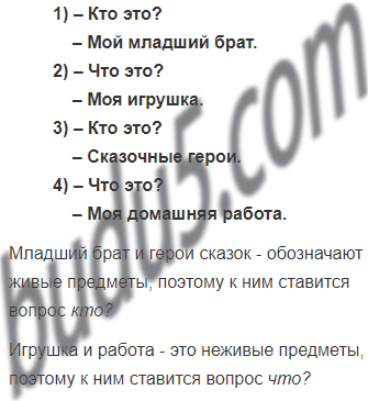 На вопрос кто? отвечают слова, обозначающие животных и людей, на вопрос что? - все остальные слова.