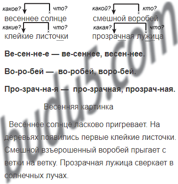 Составь предложения с этими сочетаниями слов так, чтобы у тебя получился маленький текст ”Весенняя картинка“.