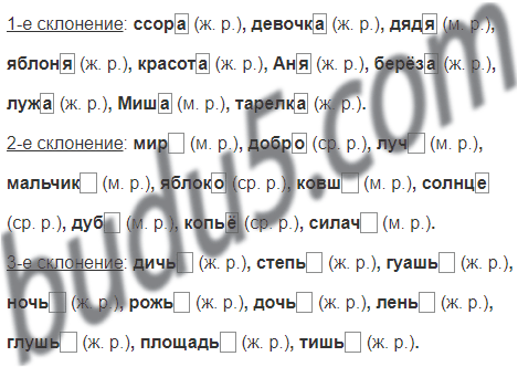 Самодиктант. Напиши по 10 существительных 1, 2 и 3-го склонения. Укажи род и выдели окончание каждого существительного.