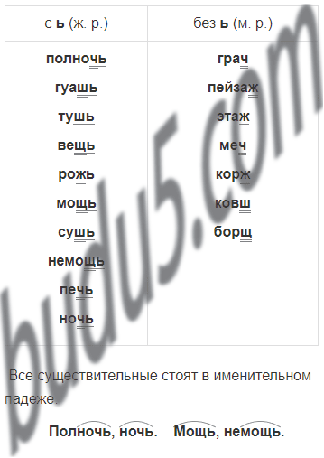 Вспомним, что мягкий знак после шипящих пишется только у существительных женского рода 3-го склонения.