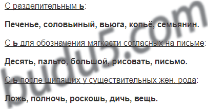 Подбери и напиши 5 слов с разделительнымь, 5 слов с ь для обозначения мягкости согласных на письме и 5 существительных, в которых буква ь в конце слова после букв шипящих указывает на женский род.