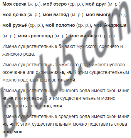 Запиши сочетания имён существительных со словами мой, моя, моё. Укажи род.