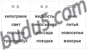 Определи род имён существительных, запиши слова в три столбика. Над столбиками напиши сокращённо: м.р., ж.р., ср.р.