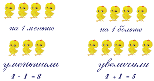 Рассмотри рисунки и попробуй объяснить, что значит увеличить и уменьшить число.