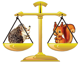 Мы видим, что масса ёжика такая же, как масса белочки.