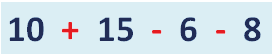 10 + 15 - 6 - 8 = 25 - 6 - 8 = 19 - 8 = 11