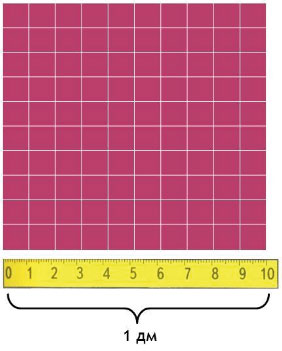 Вычислим, сколько квадратных сантиметров содержится в 1 квадратном дециметре: