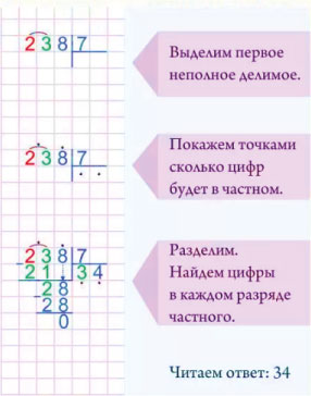 3. Определяю первую цифру частного. 24 : 7 = 3 (ост.3)
