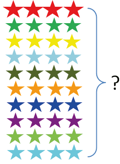 Рассмотрим задачу: Для украшения альбомов Саша вырезала разноцветные звездочки и разложила их в 10 рядов по 4 штуки в каждом ряду. Сколько звёздочек вырезала Саша?
