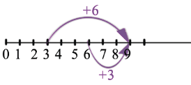 Теперь попробуем отложить на луче, от точки 3 6 единичных отрезков, и от точки 6 3 единичных отрезка, другими словами к 3 прибавим 6 и к 6 прибавим 3 :