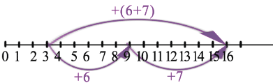, для этого от точки 3 сначала отложим (6+7) единичных отрезков, а затем от точки 3, отложим сначала 6 единичных отрезков, а затем от получившийся точки отложим еще 7 единичных отрезков: