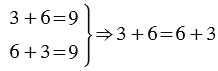 Мы видим, что и в первом и во втором случае мы попадаем в одну и ту же точку: 9, следовательно сумма чисел 3 и 6 и 6 и 3 одинакова и равна 9. Это можно записать с помощью равенства: