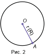 1. Радиус - это отрезок, соединяющий центр с какой-либо точкой окружности. У любой окружности можно провести бесконечно много радиусов, которые будут иметь одну и ту же длину. Обозначают радиус r или R. На Рис.2 представлена окружность с центром в точке О радиусом ОА.
