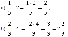 | Чтобы умножить обыкновенную дробь на натуральное число, нужно ее числитель умножить на это число, а знаменатель оставить без изменения. |