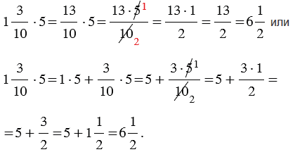| Чтобы умножить смешанное число на натуральное число, можно представить смешанное число в виде неправильной дроби, а затем воспользоваться правилом умножения дроби на натуральное число или можно умножить целую часть на натуральное число, далее умножить дробную часть на натуральное число и полученные произведения сложить. |